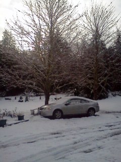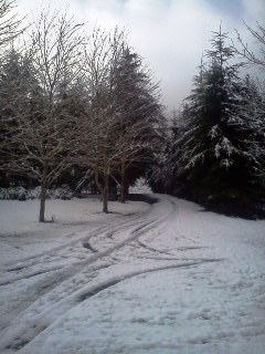 The drive was very interesting. Driving delays make people crazy. Once I hit 126 at Mapleton tailgaters were coming off Walton mountain annoyed and speeding, attempting to make up time after the delays from wrecks and downed trees. My last snow picture for the morning never got taken. As I pulled to the shoulder, rolled down the window, and focused my cell phone camera south toward the snow covered mountain across the Davidson Mill campus I heard a noise coming from the rear. I barely recognized the sound when a small pickup truck whizzed by at 60 mph slinging road grime and slush into my open window. The wet slush splashed my face and camera, covered my lap, drenched the inside of the windshield, and ran down the interior of the driver side door. Wow, what a great morning.